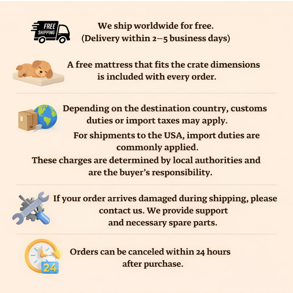 > Easy assembly and portability: Despite its lightweight structure, this dog and cat crate is durable, easy to assemble, and portable. Ideal for homes, offices, or any indoor space, it offers a comfortable area for your pet.